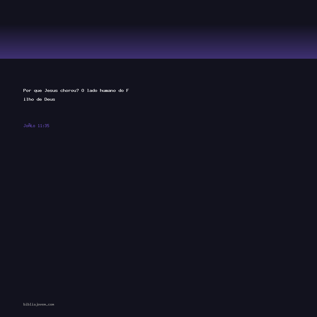 Então da próxima vez que você estiver passando por um momento difícil, lembre-se: você serve a um Deus que chora. Ele não é um Deus distante e frio – ele é Emanuel, Deus conosco, em todos os momentos, inclusive nos mais dolorosos.